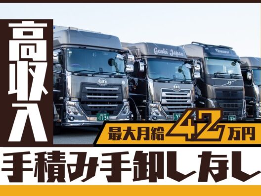 【仕事内容】♦車格 大型平トレーラー♦運送エリア 山口県・九州エリアから関東エリアまでの長距離輸送が中心 ※運行スケジュールにより、中距離・地場配送も一部あります。♦商材 鋼材や建築資材♦荷扱い 天井クレーンやフォークリフト 手積み・手降ろしはほとんどありません。---------【おすすめポイント】----------⭐最大月給42万円!⭐賞与年2回!⭐ 荷扱いはらくらく!手積み手おろしなし!⭐週休二日制でしっかり休める!⭐ご家族にも嬉しい福利厚生が充実!-------------------------------------------------------見学からでもOKです!お気軽にお問い合わせください!【元気ジャパンの魅力】✨充実の福利厚生 退職金制度や社用携帯支給など働きやすい環境が整っています。物価高高騰手当やバースデー賞与は社員さんを大切にしてくために設けました。事務所にカフェのようなキッチンを設置したりトレーニング施設を設置する。などなど新しく有用なものは次々と取り入れてます。✨昇給・賞与制度あり 日々の頑張りがしっかり評価される職場です。モチベーションを高く保ちながら働けます。✨キャリアアップを会社が応援 玉掛・フォークリフトなど、資格取得費用を会社が負担。(条件あり)スキルを活かしつつ、キャリアアップが目指せます。✨行事などは積極的 弊社は社員同士の親交を深めるため、活気良くするために、文化や伝統などを大事にしています。